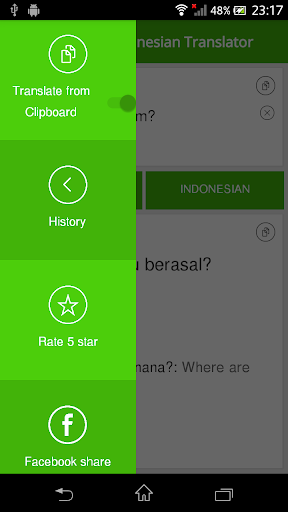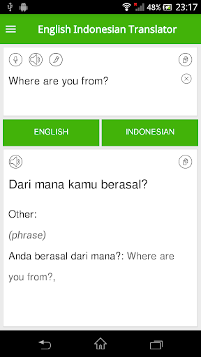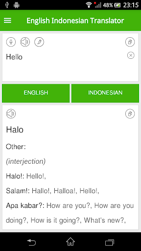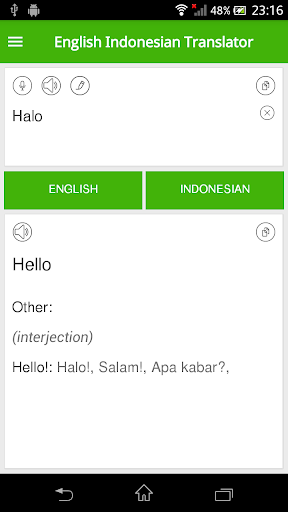 لا يمكن لهذا التطبيق ترجمة اللغة الإنجليزية فقط إلى الإندونيسية ولكن أيضا تحويل الإندونيسية إلى اللغة الإنجليزية بدقة عالية جدا بسرعة عالية. بالإضافة إلى ذلك، فإن واجهة المستخدم سهلة الاستخدام تجعلها تطبيق ترجمة سهلة الاستخدام.