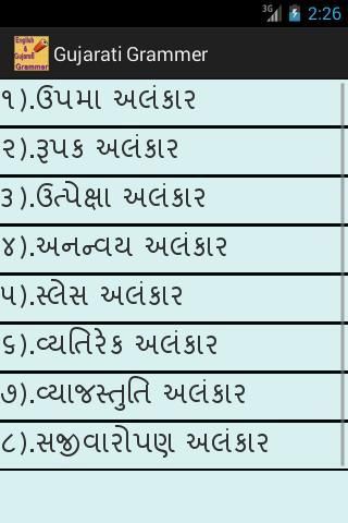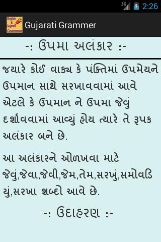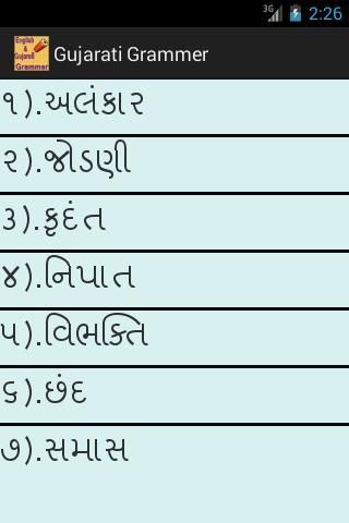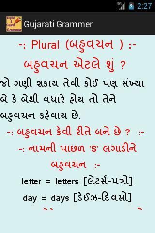 في هذا التطبيق لنا أن تشمل أكثر من نقطة قواعد اللغة الإنجليزية والغوجاراتية