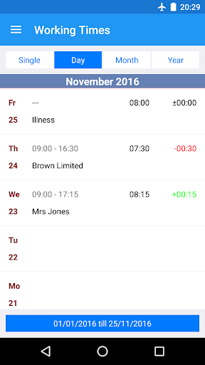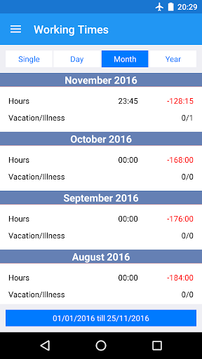 • تقييم ساعات العمل الشهرية أو السنوية مع ساعات العمل الإضافي / ناقص للموظفين الفرديين تقييم المرض والإجازات إجازة أيام في شهر أو سنة للموظفين الفرديين