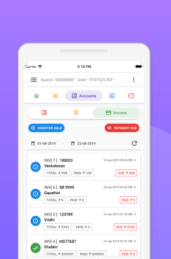2. Counter Sale Invoicing: It can be used as instant billing for customer with or without tax. "Online customer billing" or "Service Invoicing" and "Share the bill or invoice" online through social or sharing platform.