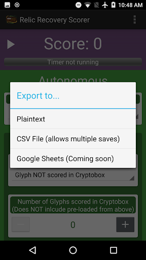 This is an app for scoring the FTC 2017-18 game, Relic Recovery. The score is updated in real time as you enter data, no need to push a refresh button :)