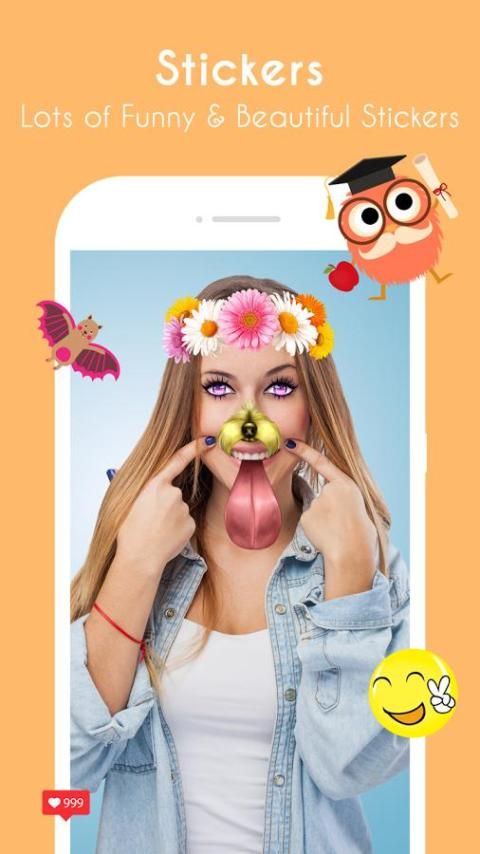 التقط كاميرا لديها الكثير من ملصقات الصور، والآثار، مبادلة، اخفاء وجمع الرموز التعبيرية. وكذلك الحيوانات مقايضة وجه مثل وجه الكلب، القط وجه، وجه النمر، الأرنب الوجه، الرسوم المتحركة / انمي الوجه، الخ