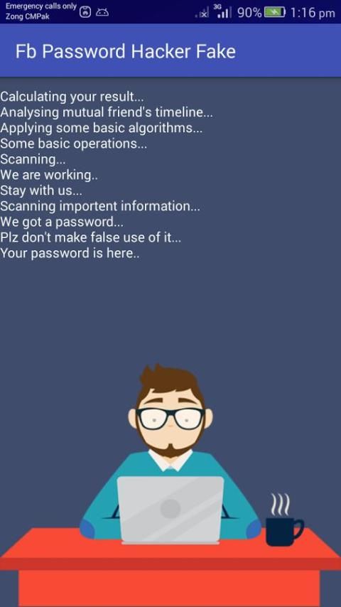 ولكن من خلال هذا التطبيق يمكنك جعل متعة عن طريق المحاكاة من القرصنة حساب الفيسبوك.