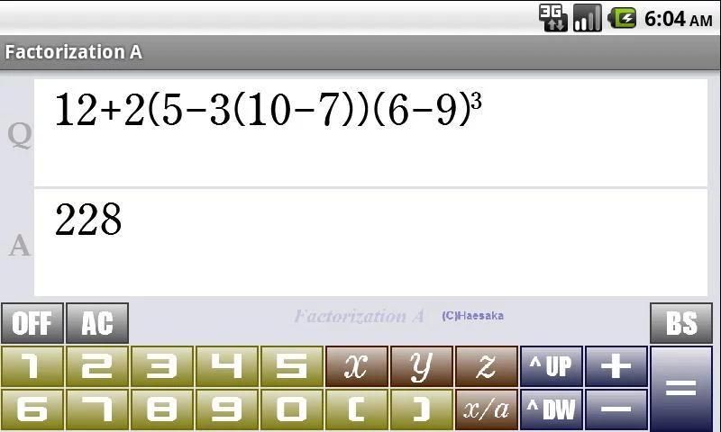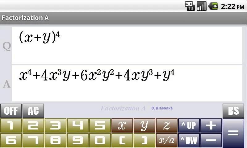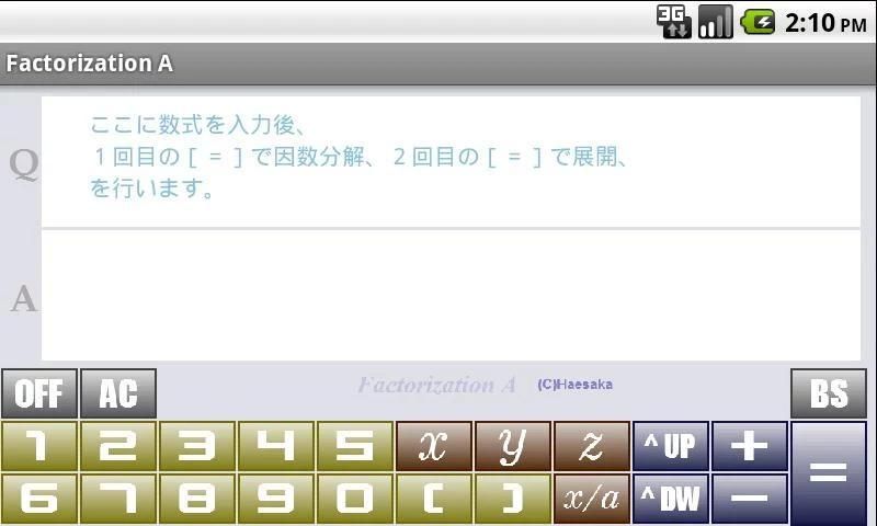 ・(1.0.2.0) 因数分解の結果、因数が6個以上になる場合に正しく結果表示されない現象の修正と、最高次の係数がマイナスの場合の結果表示の仕方の変更を行いました。