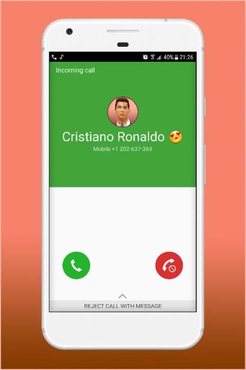 حتى تحميل وهمية دعوة كريستيانو رونالدو في الوقت الراهن وإضافة اسم كريستيانو رونالدو وهاتفه عدد وانقر إجراء مكالمة سوف تحصل دعوة من رونالدو تبدو وكأنها دعوة حقيقية لكنها دعوة فقط وهمية لمزحة أصدقائك.