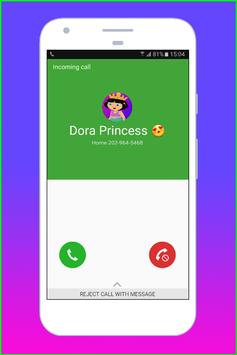 Fake Call Dora Princess is an application for calling from dora princess and barbi princess and ben and bean and sponge bob and more fake calling. Download Fake Call dora Princess for free now and get the best fake calling from dora and calling from barbie and calling from more other cartoon.