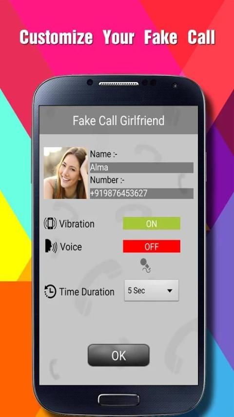 أحيانا علينا جميعا عالقا في وضع غير مرغوب فيه أو محادثة ونحن بحاجة إلى المتوسطة للخروج منه. بحيث يمكنك استخدام هذا التطبيق المدهش أن مزحة الآخرين عن طريق الرياء أن المشاهير، personalites الشهيرة أو الخاصة بك "وهمية" جيرلفريند. يمكنك خلق انطباع على الآخرين عن طريق جدولة مكالمة من الفتيات لطيف عشوائية في أي وقت تريد! هو تطبيق مزحة النهائي التي تمكنك من إعطاء نفسك مكالمات وهمية من أي واحد تريد! هذا التطبيق هو فقط للمتعة، ونكتة، وجعل خداع أصدقائك وأفراد الأسرة.
