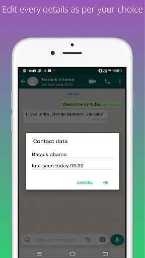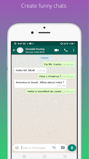 This application is used just for fun . You can make funny fake chats and calls with your friend and make them believe that your are actually chatting with your friends.You can edit every detail in fake conversation