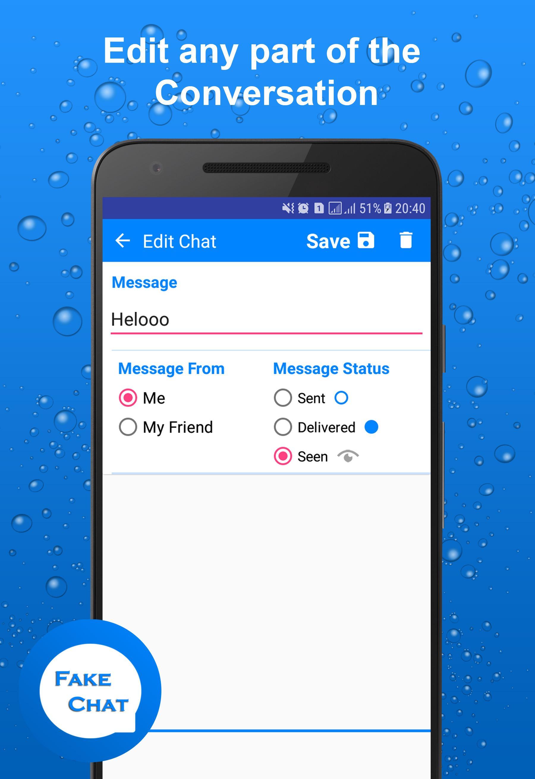 Fakenger - Fake chat messages allow you to create fake conversations and share them with your friends and family,