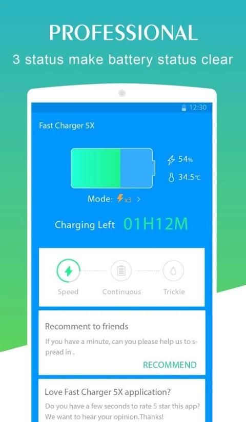 شاحن سريع 5X هي خفيفة الوزن الذكية جهاز شحن البطارية التطبيق.