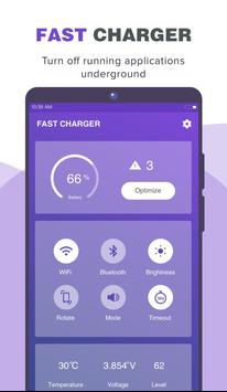 Fast Charger & Battery Saver saving not only improves charging time but also extends battery life. To continue running the fast battery charger in the background, press the "Home" button.