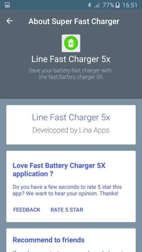 خط شاحن سريع 5X هو تطبيق مجاني لهاتفك، وطريقة الشحن السريع لل5X شاحن البطارية. ذلك التوقف بطارية بالمثل لمدة 4 أيام، وحدة المعالجة المركزية درجة الحرارة البرد خارج جنبا إلى جنب مع الهاتف أنيق وتسريع.