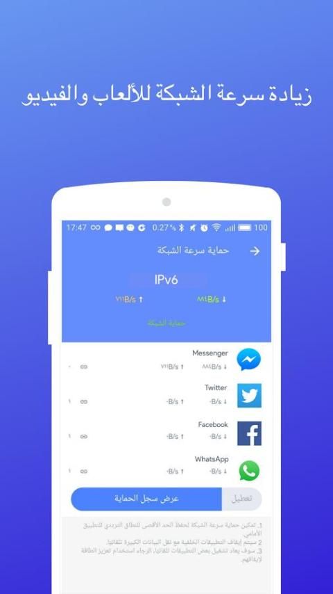 هل تواجه مشكلة في بطء سرعة الوصول إلى الإنترنت ودائمًا تنفصل عن الإنترنت؟ هل يتم إهدار بياناتك الجوالة شهريًا؟ هل تعاني من القلق على منظومة أمانك على الإنترنت؟ بنقرة واحدة، وتصبح أنت المسيطر على شبكة Android.