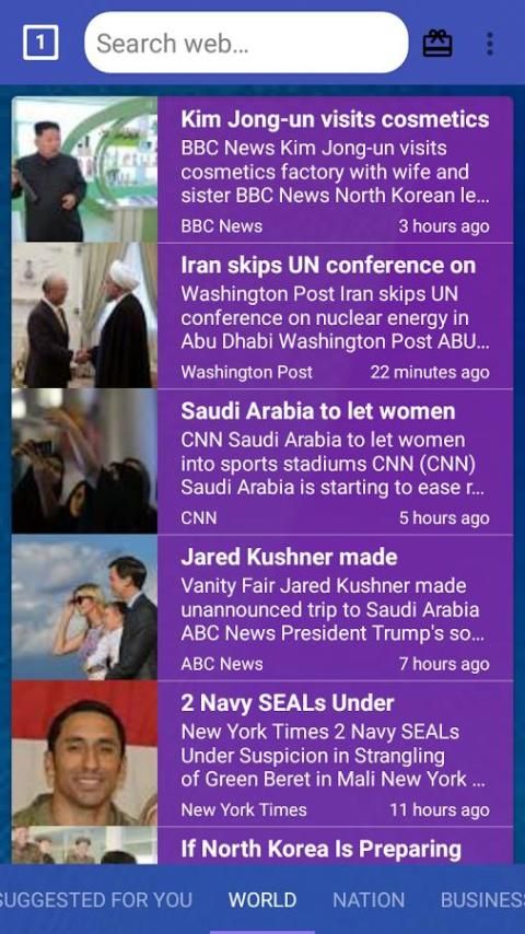 مرحبا شباب، أنا هنا نقدم لكم متصفح ويب سريع بالنسبة لك. يمكنك تصفح صفحات الويب الخاصة بك بسرعة وسهولة ويمكنك الحصول على تحديث العديد من أنواع الأخبار والمعرفة مثل أعلى قصص، لوحة السريع، الترفيه، الرياضة، الصحة وهلم جرا. حتى ينعم، شكرا لك.