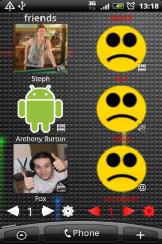 Favourite contacts Widget is a great app for quick access to favourite contactsThis is a great app for quick access to six favourite contacts eighteen in the paid version. With a horizontal and a vertical option this widget is extremely customizable. Vertical Size: 2x4.Horizontal Size: 4x2.The app will show three contacts per screen and there are two out of six screens available in the free version, which can be navigated, veer the arrow buttons. Each contact can perform one of four functions:1. View contact2. Phone contact3. Message contact4. email contactContact images will be displayed unless there is no image or a facebook image Facebook images are not available due to a Facebook policy decision to not allow 3rd party access in which case there will be a default image displayed which is selected out of two default images there are eight images in the paid version. The free version also contains ads in the configuration.Permissions:1. ReadContacts To access contacts2. CallPhone To ring, message and email contacts3. Internet For ads, Analytics4. AccessNetworkState For ads, AnalyticsI reserve the right to anonymously track and report user39;s activity within this application.Any problems or suggestions dont hesitate to email me a Support@ElectrifiedPixel.com