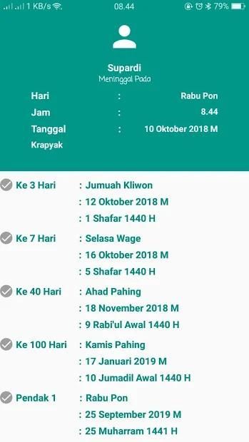 This Faza Haul application contains the calculation of Haul and Pendak, which aims to find out when to commemorate the day of death which is usually done in the Java area, starting from the 3rd day, 7th day, 40th day, 100th day, the day -1000, 1st Haul, 2nd Haul, 1st Pendak, 2nd Pendak.