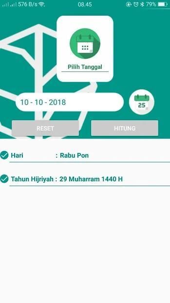 This application also provides calculations to find out "weton / market" and the Hijri year when the person was born. An example of Si A was born on August 17, 2000 AD, the results of the calculations showed on the 16th of Jumadil Awal 1421 H.