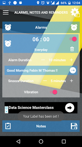 The user can also set up alarms, notes and reminders according to their preferences with respect to content, time and date in the Alarm, Notes and Reminders section.