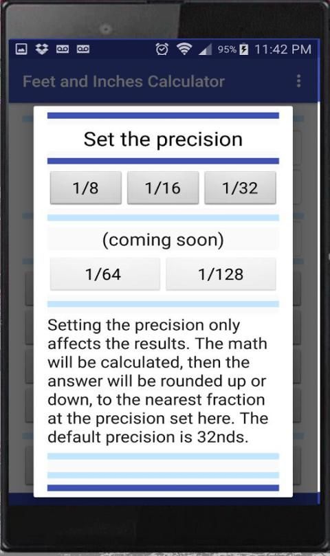 سهولة الاستخدام وتصميم يسمح للدخول السريع للقياسات الخاصة بك. هناك قسم لقدميك، بوصة، والكسور. مجرد اختيار جزء كنت ترغب في استخدامه من الحوار اختيار جزء سهلا.