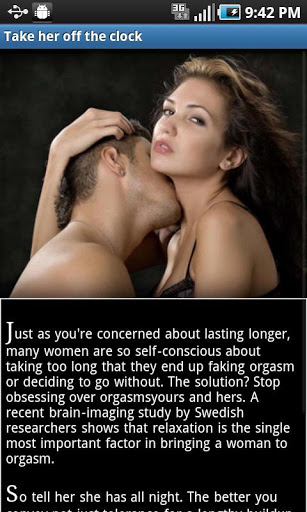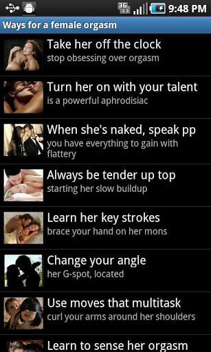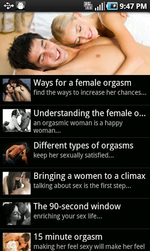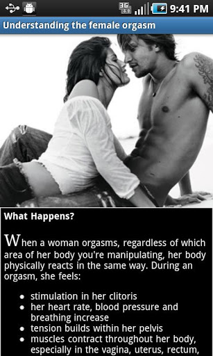 All about female orgasms ...The female orgasm unveiled Everything you need to know in how to attain a female orgasm.Female orgasms require skill, and knowledge. With this only of its kind App we discover methods of attaining orgasms. Bring her to her knees and quivering with satisfaction as you discover all the secrets in attaining orgasms.Our App gives specific information on different types of orgasm, how to bring a woman to orgasm, 15 minute orgasm and multiple orgasms. Know her body, and be certain you will know how to give her an orgasm that will leave her quivering with pleasure time and time again.Download now, and learn all the secrets of the female orgasm.These days most women want orgasms. That wasn39;t always the case. A couple of generations or so ago, many adult females simply didn39;t have climaxes and a lot of them weren39;t bothered about it. Probably a lot of them didn39;t actually know what an orgasm was.And some doctors claimed that, for a huge proportion of women, it was 39;normal39; to have no experience of orgasm. Indeed, as late as the 1970s there were still some who maintained that the female orgasm didn39;t exist and was simply a myth made up by the media.All that has changed now. These days, medical opinion is that every woman should be able to have orgasms if she wants to. Furthermore, the view of most sex experts is that the majority of women are capable of multiple orgasms if they wish to have them. In general, the ability to have multiple orgasms is greater in more mature women.What is a female orgasm?We39;re writing this explanation in the assumption that you the reader are male. This 39;orgasmic moment39; is characterised by surges of contractions in the sex organs, occurring almost every 0.8 seconds.Men are well aware that these throbs of pleasure are accompanied by the pumping out of spurts of seminal fluid. Obviously this doesn39;t happen in women.A few females do produce some fluid at orgasm, but the impression given in so many erotic stories that most women 39;ejaculate39; is not correct. Only a minority of females do this.Multiple orgasmThe other big difference between male and female orgasm is this: after the first climax, many women can 39;come39; again, often within a minute or two.This ability is extremely rare in males. Relatively few young women can achieve multiple orgasm, because it39;s an ability that usually has to be learned. But with the help of a skilled lover, most women can eventually achieve the capacity for multiple orgasms if they so desire.Bringing women to a climaxFor men perhaps the most important thing to realise about female climaxes is that with women, it39;s not a mechanical thing as it generally is with men.You see, most males will ejaculate quite quickly if they have their penises rubbed. This applies even if the circumstances aren39;t very romantic or even if they don39;t particularly like the person who39;s doing the rubbing Women are not like this. Female orgasm isn39;t a pushbutton response. The conditions have to be right.Although females vary, many women need the following if they39;re going to reach a climax easily:a romantic atmospherepleasant, comfortable surroundingsa partner who they really likea feeling of being wanted and appreciateda good flow of natural lubrication so that the delicate female parts don39;t get sorea skilled partner who knows how to stimulate the clitoris.Unless you can provide the above, you are not going to have great success in giving your partner orgasms.female orgasmic Keywords:orgasm, erotic, sex, g spot, G spot, multiple orgasms, orgasms, women orgasms, vaginal orgasms, orgasm how to, female orgasm, orgasm woman, woman in orgasm, orgasm in women, female orgasms, have orgasm, orgasmic, make orgasm, best orgasm, sex,