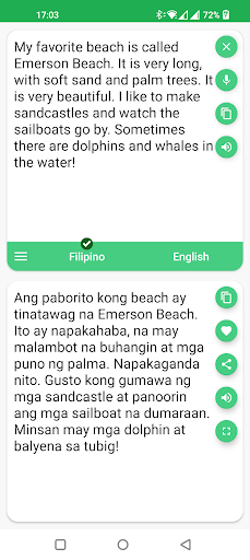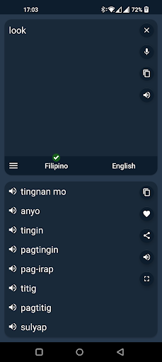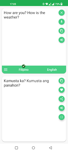 مع هذا المترجم ، يمكنك بسهولة ترجمة الكلمات والنص من الفلبينيين إلى الإنجليزية ومن الإنجليزية إلى الفلبينية.أنت قادر على ترجمة الكلمات وحتى الجمل ، في ثانية تقسيم.واجهة سهلة الاستخدام