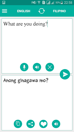 هذا التطبيق المجاني قادر على ترجمة الكلمات والنصوص من الفلبينية إلى الإنجليزية ، ومن اللغة الإنجليزية إلى الفلبينية. أفضل تطبيق للترجمة السهلة والسريعة ، والتي يمكن استخدامها مثل القاموس. إذا كنت طالبًا أو سائحًا أو مسافرًا ، فسوف يساعدك ذلك على تعلم اللغة الفلبينية أو الإنجليزية!