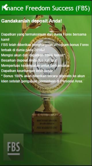 Perkenalkan Perusahaan FBS didirikan pada tahun 2009 dan sekarang merupakan pemimpin di antara broker internasional yang paling populer. Selama tahun kerja berhasil kami, perusahaan FBS meraih gelar broker terbaik, menjadi broker favorit untuk ratusan ribu trader dan memenangkan kepercayaan lembaga keuangan bergengsi. FBS merupakan perusahaan internasional yang menyediakan layangan istimewa terhadap setiap klien! Buktikan saja: Kami punya klien dari 110 negara Lebih dari 700 000 trader Lebih dari 130 000 mitra Setiap tahun klien kami menghasilkan lebih dari $500 000 000
