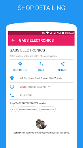 By using this application you can find list of shops near you along with shop timing, types of goods shops provides,shop location as well as the person details who serves you at that particular shop.