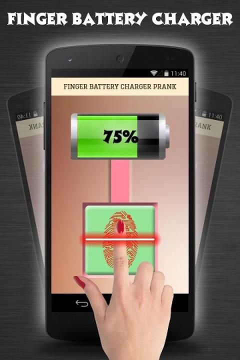 تنويه: بصمات الأصابع شاحن البطارية المزحة هي لأغراض الترفيه فقط. فإنه لا تهمة البطارية الخاصة بك. شحن البطارية غير ممكن مع شاشة الروبوت الجهاز والكاميرا. هذا هو أفضل تطبيق لخداع أصدقائك.