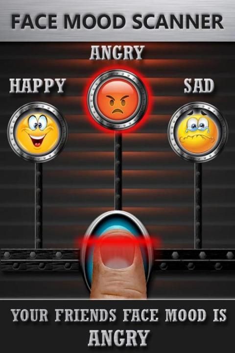 لم يتم تحديد بصمة الوجه المزاج الماسح الضوئي عن طريق وجهك. كهرباء بصمة الوجه المزاج الماسح المزحة التطبيق هو التطبيق مزحة - لم يكشف حقا إذا كان الشخص سعيدا أو غاضبا أو حزينا. بصمة الوجه المزاج الماسح المزحة التطبيق هو فقط لغرض الترفيه للعب مع أصدقائك. جعل أصدقائك الحمقى معها. نتيجة ببساطة تشغيل سعيد أو حزين أو غاضب تعتمد على حساب مسح إصبعك.