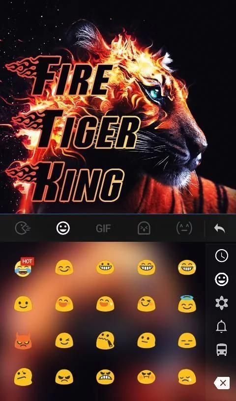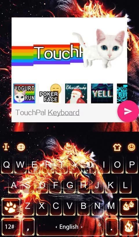 - تثبيت لوحة المفاتيح موضوع جديد TouchPal مجانية النمر النار الملك رموز تعبيرية ---> اضغط على الرمز الخاص به ---> شأنه أن يدعم من قبل لوحة المفاتيح TouchPal رموز تعبيرية تلقائيا!