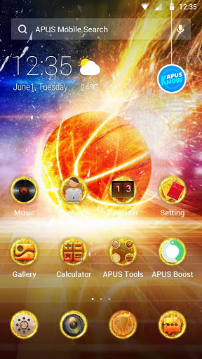 1. Flaming blood basketball APUS stylish theme is free, but only compatible with APUS Launcher. If you want to apply it, please install APUS Launcher on your Android phone. Or download new theme and APUS Launcher. When you install APUS Launcher, there are variety of themes in APUS theme & wallpaper shop, such as phonex, lovely unicorn, pink diamond mickey, Red heart, luxury, gold, business, black, simple, magic, comic, football, basketball, cricket, Valentine's Day, New Year, Halloween, Christmas, cute cat and dog, butterfly, dawn theme. Install APUS launcher to enjoy more themes.