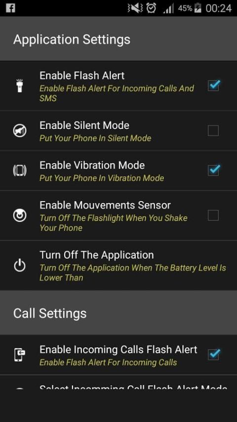 لدينا التطبيق فلاش التنبيه هو أداة الرائعة التي يمكن أن أذكر لك المكالمات الواردة والرسائل القصيرة مع يومض من الأضواء الساطعة الخاص بك عندما كنت لا تريد أن تسمع نغمة رنين، أو كنت ترغب فقط في رنين جميل وامض تأثير الاضواء من هاتفك