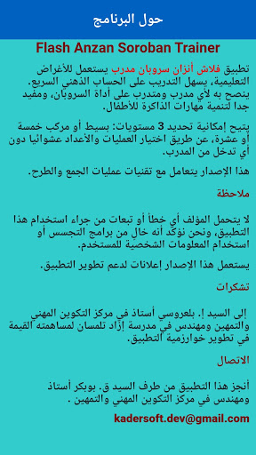 تطبيق مدرب فلاش أنزان سوروبان يستعمل للأغراض التعليمية، يتم استخدامه للتدريب على الحساب الذهني السريع. ينصح به بشدة لأي مدرب ومتدرب على أداة سوروبان، فهو يساعدك على: