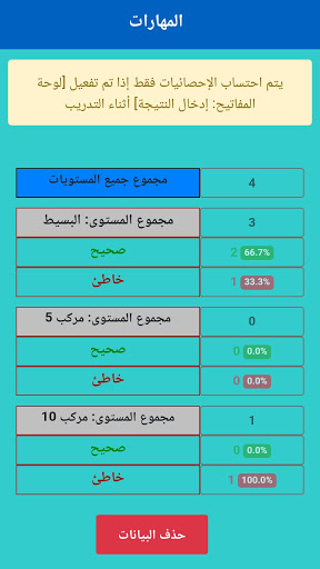 تفعيل لوحة المفاتيح لإدخال إجاباتك، مما يسمح بحفظ الإحصائيات الخاصة بمهارتك.
