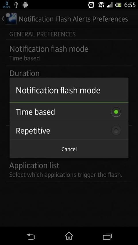 • Notification flash modes (Time based or Repetitive).