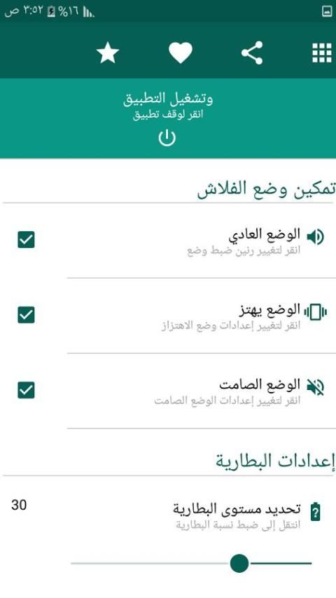 ★ التنبيه فلاش ستعمل على تهمة فوق نسبة المحددة في تطبيق فلاش طرفة.