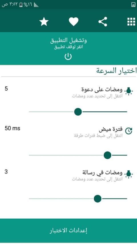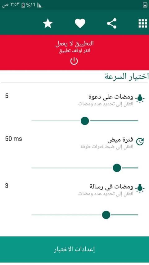 ★ زر إعدادات اختبار في التطبيق سوف تحقق من الإعدادات الحالية لتطبيق تنبيهات فلاش.