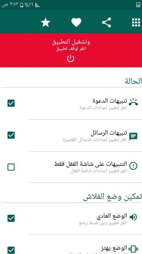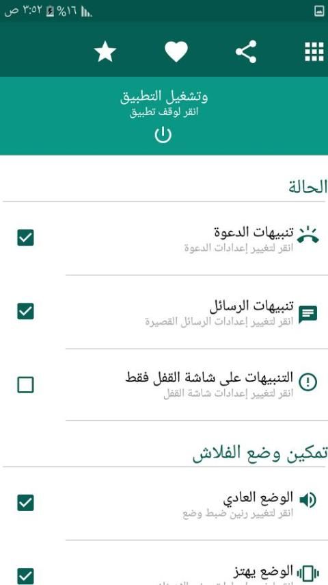 ✔ يومض فلاش لديه خيار للسماح للومضات على الشاشة فتح أم لا.