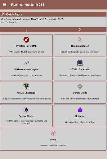 » Access 18،832 أسئلة Jamb Offline - ممارسة الماضي Jamb State والأسئلة المحتملة من 24 موضوعات مع تفسيرات مفصلة.