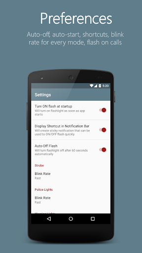 Shake to turn on flashlight, Torch, Police Lights, Warning Lights and strobe.