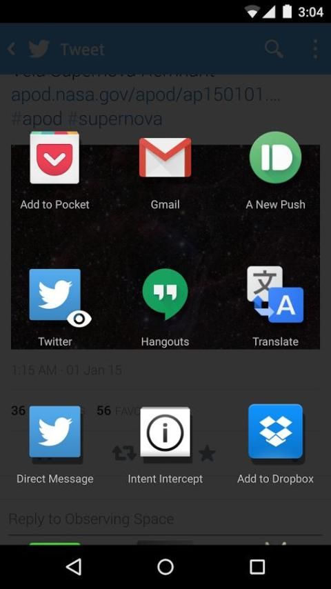 كما يتضمن تلقائيا عرض التطبيقات بحيث يمكنك الانتقال مباشرة إلى مستعرض عند مشاركة.