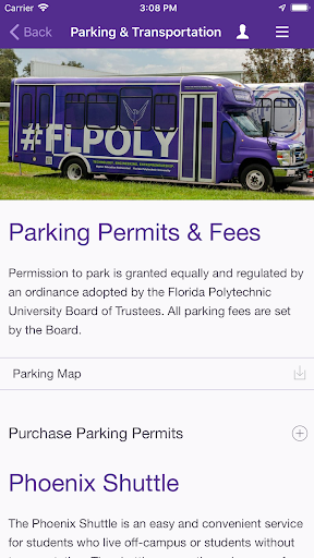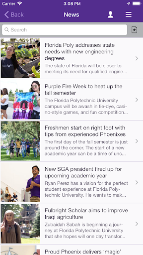 يمكن لطلاب بولي فلوريدا وأعضاء هيئة التدريس والموظفين وأفراد المجتمع الوصول إلى أحدث معلومات بولي فلوريدا على جهازهم المحمول.