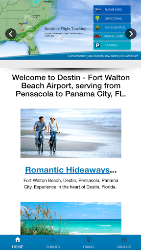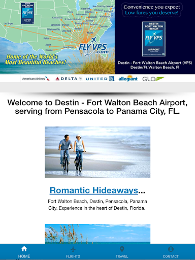 يوفر تطبيق جوال مطار Flyvps Destin Fort Walton Beach Airport بيانات الطيران المباشر للوافدين / المغادرين، درع رحلة حقيقية، وقوف السيارات، سيارات الأجرة ومعلومات تأجير السيارات.Flyvps هو المطار المفضل إلى ساحل الخليج في فلوريدا، خدمة Destin Airport، مطار Pensacola، مطار بنما سيتي.
