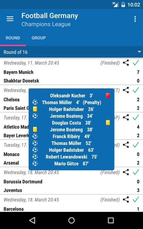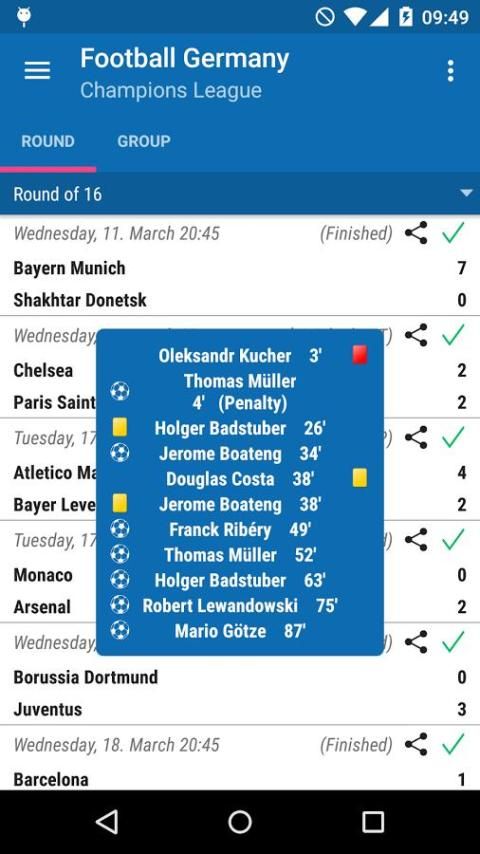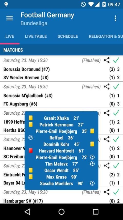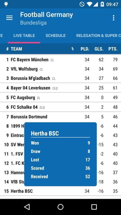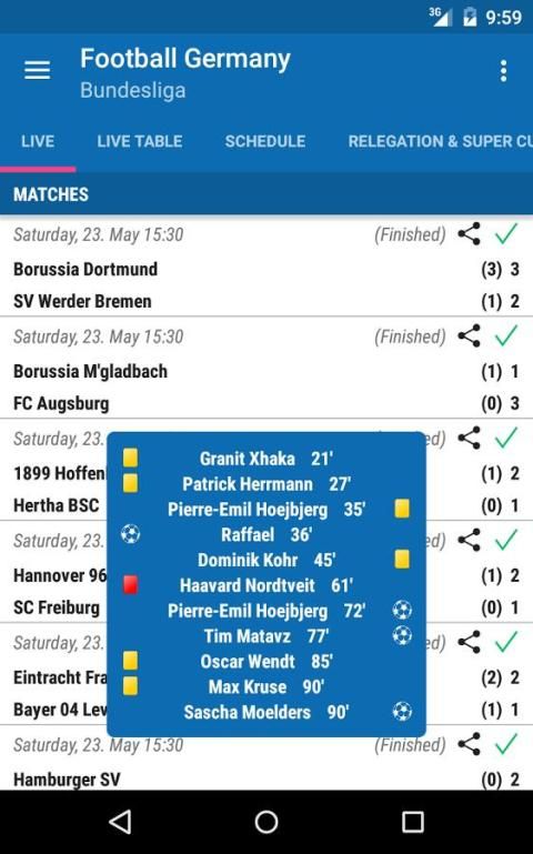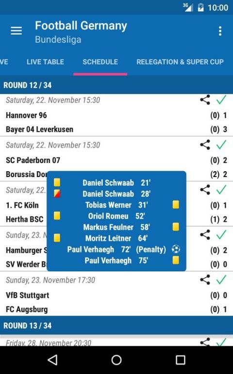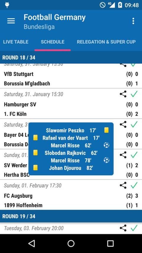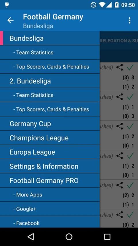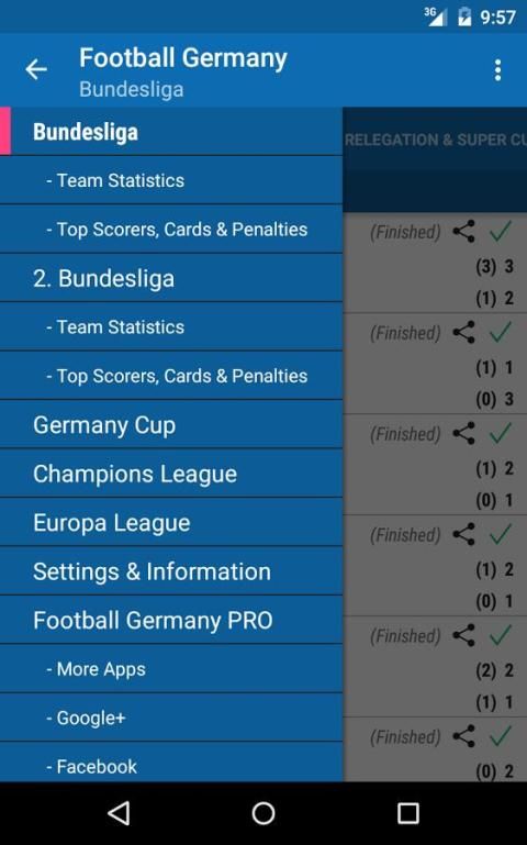 In the app you will find: 1. Bundesliga, 2. Bundesliga, 3. Liga, Champions League, Europa League and DFB Pokal (German Cup) ... and more...