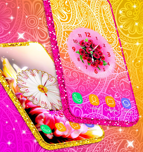 لديها خلفيات متعددة الحركة مع تصميم مجردة وتألق صور الذهب، خلفيات الزهور الوردية، pastel الوردي hd wallpaper، خيارات تخصيص متعددة مثل مبدل الخلفية، الإطارات، النجوم الساطعة المتحركة، لمسة السحر، ساعة التناظرية، الرموز التعبيرية، اسمك، وأكثر من ذلك، هذا يعمل على شاشة القفل وهم جميعا