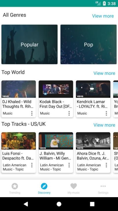 - لاعب يوتيوب الموسيقى: مشاهدة أشرطة الفيديو الخاصة بك في كامل الشاشة أو استخدام اعب المنبثقة لتعدد المهام
