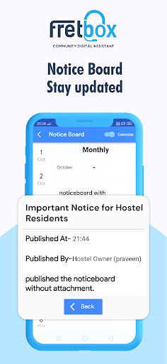 It empowers you to connect with society / hostel administration in an effective way and keeps you informed.