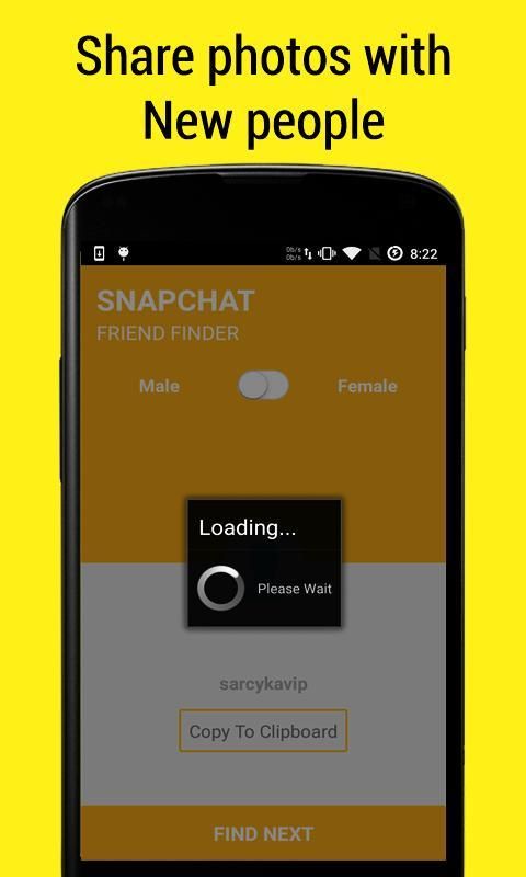الآن يمكنك الدردشة مع أي مستخدم على الانترنت. هذا التطبيق يسمح لك لإيجاد والدردشة مع ألف من مستخدمي الإنترنت لسناب شات. يمكنك البحث عن صديق ذكرا أو أنثى للدردشة وسوف تظهر لك هذا التطبيق للمستخدم الانترنت عشوائي.