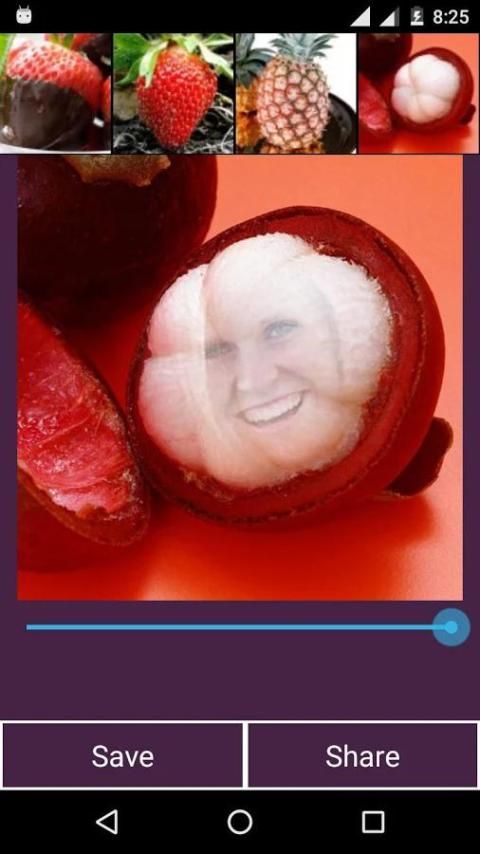 الفاكهة يواجه التطبيق يسمح لوضع الخاص بك أو أي صورة في أنواع مختلفة من الفواكه في طريقة بسيطة.